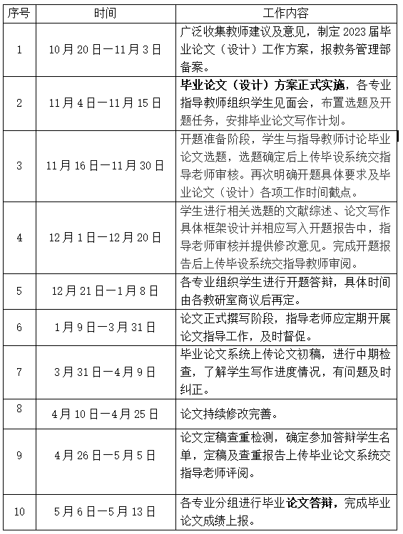 为切实做好工商管理学院2023届本科毕业生毕业论文工作,加强过程管理,提高论文质量,在2023届本科毕业生学年论文的基础上,结合各专业教学计划,现将工商管理学院2023届学生毕业论文工作安排如下: