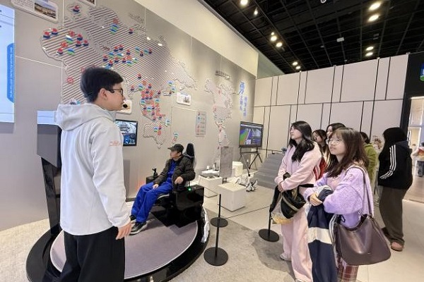 自由参观环节,同学们根据自身专业兴趣与学习需求,在各个功能展区前驻足观摩、交流探讨,亲身感受适老化、适幼化空间等全龄化友好空间的人性化设计细节,主动向展区工作人员请教技术原理与实践应用问题,现场学习氛围热烈浓厚。“从茶室到客房的灵活转换,这个可变空间的设计太巧妙了,完全兼顾了实用性与美观性!”一位同学在参观体验后兴奋地分享自己的感悟。