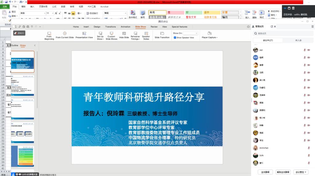 6月7日,学院邀请北京物资学院交通学位点负责人倪玲霖作《青年教师科研提升路径分享》线上专题学术讲座。讲座由工商管理学院副院长、工商管理学科方向带头人戴钰慧主持,工商、财税、金融、创业等二级学院的骨干教师和青年教师参会。