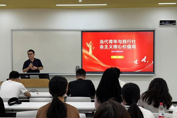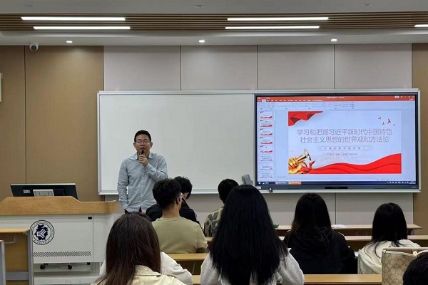 工商管理学院党总支书记余健向在场学子讲述习近平总书记在党的二十大指出马克思主义中国化思想的重要性,并指出中华民族伟大复兴的关键,同时也点出了本次培训的重点——学习新思想。培训中余健围绕“六个坚持”,深刻诠释了习近平新时代中国特色社会主义思想,旨在让各位入党积极分子增强党性党悟,更深刻地了解并运用习近平新时代中国特色社会主义思想。最后,余健表示,青年一代有理想、有本领、有担当,国家就有前途,民族就有希望。