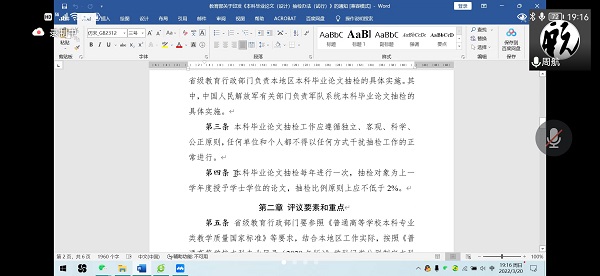 在周航的带领下,本次主题党日活动同步学习了教育部《本科毕业论文(设计)抽检办法(试行)》。周航表示,本学期教师们面临的一项重点工作是毕业论文(设计)的指导工作。学校教务管理部已经下发了教育部论文抽检的办法,每位指导学生毕业论文的教师都应该认真学习。他重点带领大家学习了办法中关于论文的评价原则,抽检比例和步骤等条目,还借助学校下发的关于工商管理学院2017级毕业论文的反馈意见,进行逐条的阐释说明。