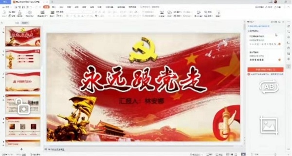 首先工商管理学院学生第一党支部林安娜同学分享了自己心中的中国共产党。中国共产党在她心中是为中国人民争取独立和自由的先进力量,和平时期更是经济发展的推动者。党在成立到建国这一阶段,面临着巨大的挑战,是每位党员心中的精神支撑着中国共产党不断前行。在今后的学习中,我们需要更加严格要求自己,努力学习共产党员不怕吃苦的精神,秉持着赤子之心全心全意为人民服务。