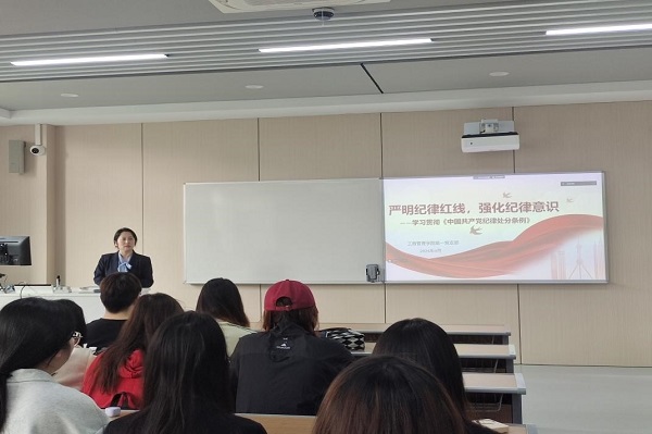 工商管理学院学生第一党支部于4月26日下午在3教304组织召开组织生活会,以“严明纪律红线,强化纪律意识”为主题,学习贯彻《中国共产党纪律处分条例》。本次大会由22工商1班的兰心紫同学主持,支部书记周莉莉及一支部全体成员参加本次会议,参与学习讨论。