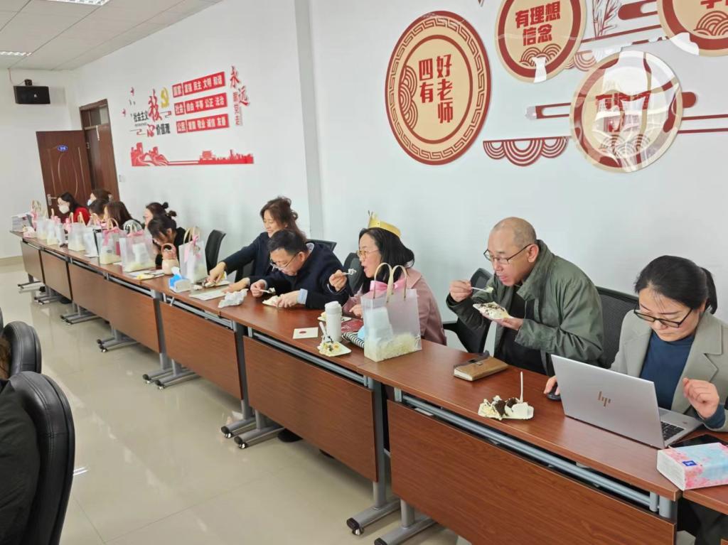 此次共有水瓶、双鱼、白羊和金牛4个星座的16位教职员工到场接受全院老师的祝福。寿星老师们将学院领导班子亲手写就的生日祝福一一读来,大家合影留念、畅所欲言,现场氛围温馨欢愉。