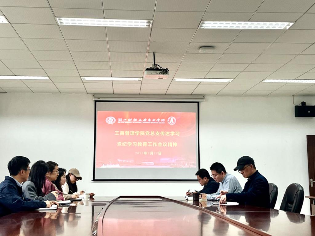 4月17日,工商管理学院党总支召开理论中心学习会,党总支书记余健传达学习东方学院党委(扩大)会议关于研究部署党纪学习教育工作的会议精神。学院党总支委员、各党支部书记参加会议。