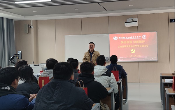 研路漫漫岁月深,书山学海志向高。在2024年全国硕士研究生招生考试来临之际,为鼓励考研学子增强考研信心,舒缓备考压力,积极迎接考试,11月30日,工商管理学院开展“研途漫漫,温暖相伴”2024届毕业生考研慰问活动,为备战考研学子送上“考研加油包”。工商管理学院党总支书记余健、党总支副书记宣刚、副院长周航以及全体辅导员参加慰问活动。活动由学院党总支副书记宣刚主持。
